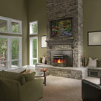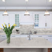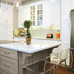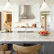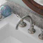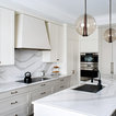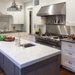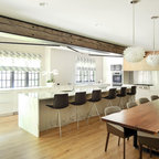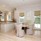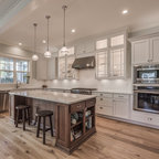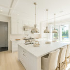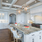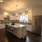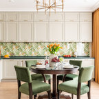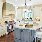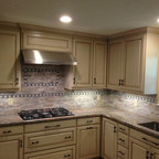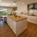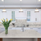 Idée de décoration pour une grande cuisine tradition avec un évier encastré, un placard avec porte à panneau encastré, des portes de placard blanches, un plan de travail en granite, une crédence blanche, une crédence en carreau de céramique et un électroménager en acier inoxydable. — Houzz