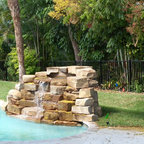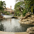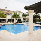 Exemple d'un grand couloir de nage arrière méditerranéen sur mesure avec des pavés en béton. — Houzz