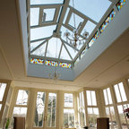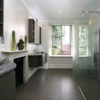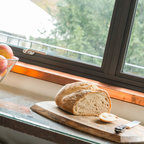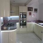 A hob set into the peninsula worktop allows those cooking to face outwards into the room, while a couple of bar stools allow the worktop to be transformed into a practical breakfast bar in the mornings or a spot to relax in with a glass of wine in the evenings.A bank of tall units discreetly houses the Miele appliances and an open shelving unit offers plenty of room to display glassware and crockery.Microwave combination oven, steam combination oven, oven, built-in fridge-freezer, 2-1 induction hob, built-in wine cooler, dishwasher, robot vacuum cleaner, all Miele. Misty Fjord tiles, Topps Tiles.Shop everything in the kitchen here