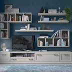 Wood shelf looks as if tv is resting on it. For the chimney breast