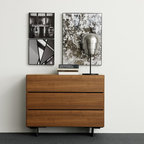 A slim desk is tucked into the space under the bedroom window allowing the room to be used during the day, and providing a neat solution to the conundrum of finding space for a home office in a family home. Beoplay M5, Bang & Olufsen. Tetbury Ivory Curtain on a Brooklyn Graphite pole, and secondary inner curtain Serene Stoine Voile on track, both Hillarys