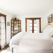 2. DOORS - door and trim stained (minimal baseboard white), wide plank wood flooring of lighter shade