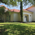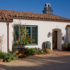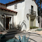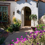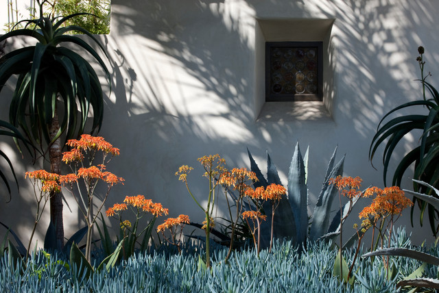 Excellent choice of plant materials contrasted to plaster exterior