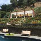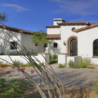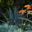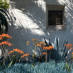 balcony banister is spanish. landscaping and plants are spanish....agave on native