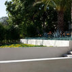 same large center stairs to entrance but with tall hedges on each side for privacy