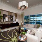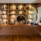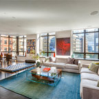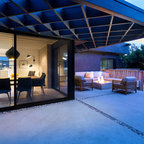 Living Room looking back towards the Entry. Three-sided clerestory windows bring natural light indirectly into the space for great natural lighting throughout the day. Photo by Clark Dugger