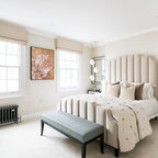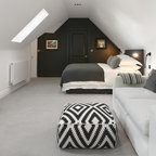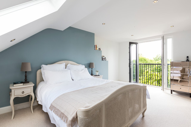 Inspiration pour une chambre avec moquette traditionnelle avec un mur bleu. — Houzz