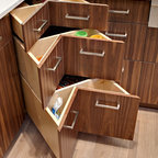 The key to a well designed kitchen is not necessarily what you see on the outside. Although the external details will certainly garner admiration from family and friends, it will be the internal accessories that make you smile day after day. Your kitchen will simply perform better with specific accessories for tray storage, pantry goods, cleaning supplies, kitchen towels, trash and recycling bins.