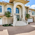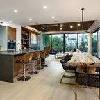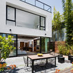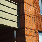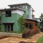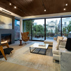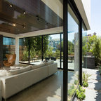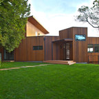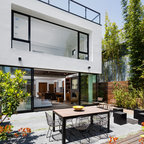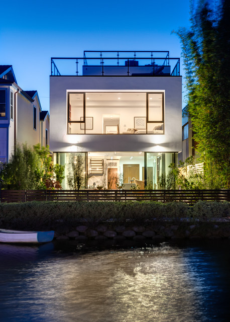 Idées déco pour une façade de maison blanche contemporaine de taille moyenne et à un étage avec un revêtement en stuc et un toit plat. — Houzz