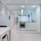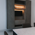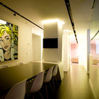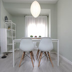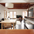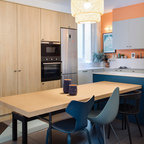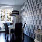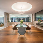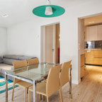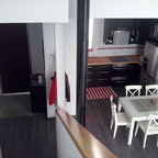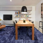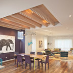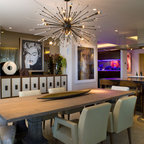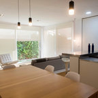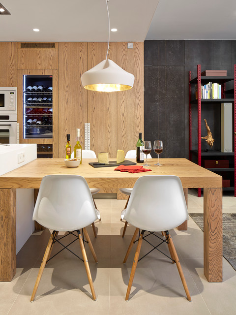 Idée de décoration pour une salle à manger ouverte sur la cuisine design de taille moyenne avec aucune cheminée. — Houzz