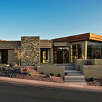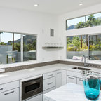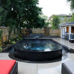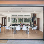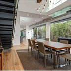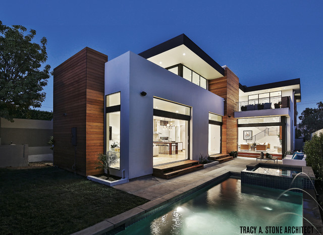 New two-story house in central Los Angeles. The main living spaces wrap around the pool and spa.