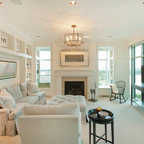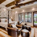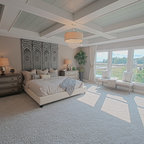 Cette image montre une grande chambre traditionnelle avec un mur gris et un sol gris. — Houzz