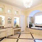 Inspiration pour une salle de bain principale traditionnelle de taille moyenne avec un placard avec porte à panneau encastré, des portes de placard blanches, une douche à l'italienne, un WC séparé, un carrelage blanc, un carrelage métro, un mur blanc, un sol en marbre, un lavabo encastré, un plan de toilette en marbre, un sol blanc, une cabine de douche à porte battante et un plan de toilette blanc. — Houzz
