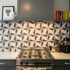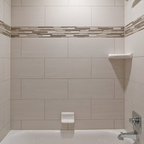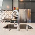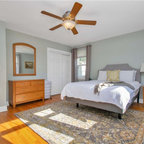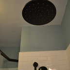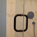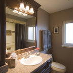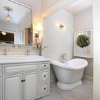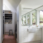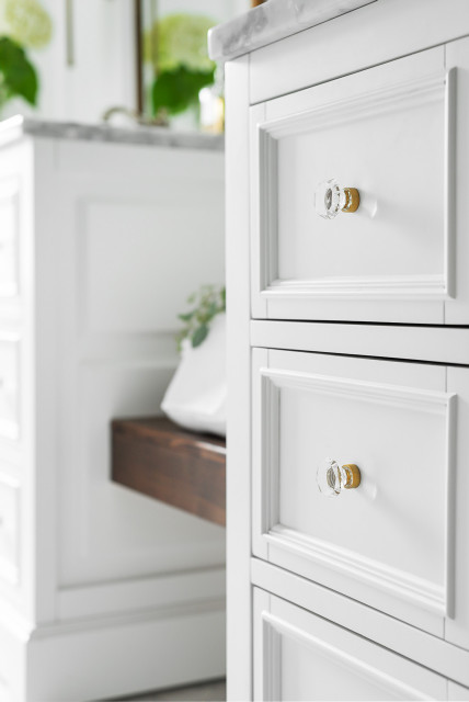 We utilized a Moroccan inspired mirror to accentuate and play with the unusual slanted roof line. By adding clean lines and ample drawers for storage, we were able to transform this outdated bathroom into a true modern master retreat.