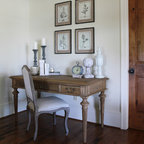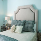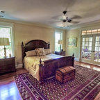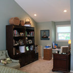 Cette image montre une grande chambre traditionnelle avec un mur gris et un sol gris. — Houzz
