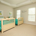 Réalisation d'une grande chambre tradition avec un mur gris et un sol gris. — Houzz