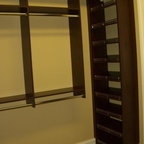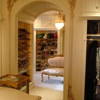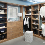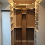 Cette image montre un dressing traditionnel de taille moyenne avec un placard à porte shaker, des portes de placard blanches, moquette et un sol gris. — Houzz