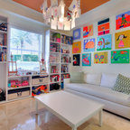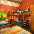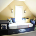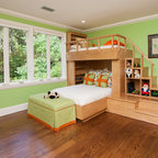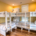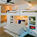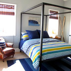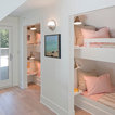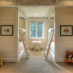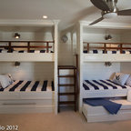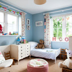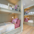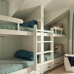 Cette photo montre une chambre d'enfant de 4 à 10 ans bord de mer avec un mur blanc et un sol en bois clair. — Houzz