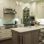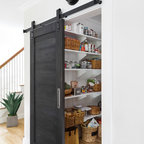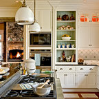 open shelving allows for a larger expanse of the 4-by-12-inch Carrara marble tiles and transformed the wall into a stunning focal point that grabs your attention as soon as you walk in the room. “It was important to have that texture of the marble here. A medium-gray grout with used which would be easier to keep clean