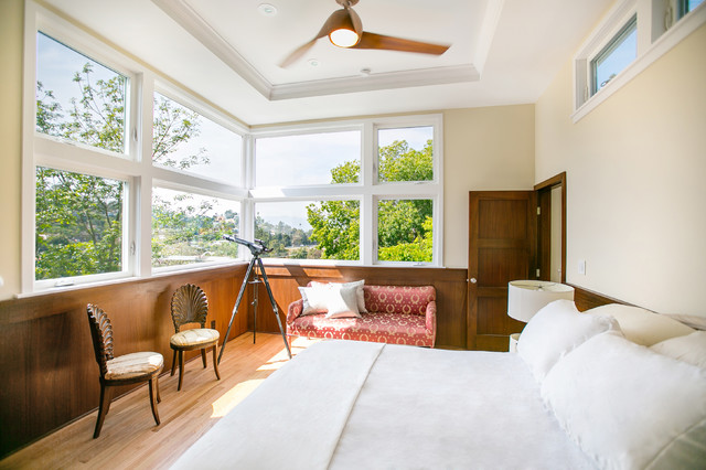 The challenge of this project was to fulfill the clients' desire for a unique and modern second story addition that would blend harmoniously with the original 1930s bungalow. On the exterior, the addition appropriates the traditional materials of the existing home, while using contemporary proportions and lines to speak to a modern sensibility. Staggered massing and terraced roofs add to the visual interest and a harmonious balance in the design. On the interior, rich natural materials like oak and mahogany add warmth to the clean lines of the design. The design carefully frames stunning views of the reservoir and surrounding hills. In each room, multi-directional natural light, views and cross-ventilation increase the comfort and expansiveness of the spaces