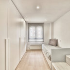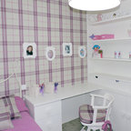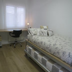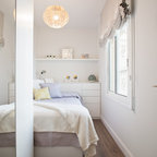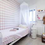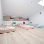 Aménagement d'une chambre d'enfant de 4 à 10 ans scandinave de taille moyenne avec un mur beige et un sol en bois brun. — Houzz