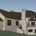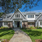 Cette image montre une grande façade en brique à un étage. — Houzz