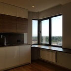 Сочетание белого, дерева и чёрных деталей