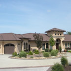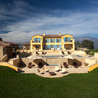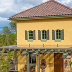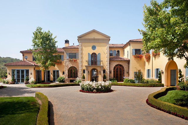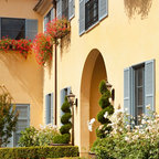 Réalisation d'une façade de maison jaune méditerranéenne à un étage. — Houzz