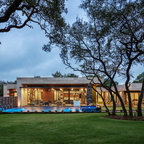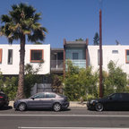 Inspiration pour une petite façade de maison blanche design à un étage avec un revêtement en panneau de béton fibré et un toit plat. — Houzz