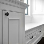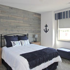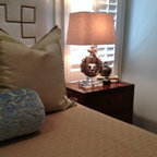 Aménagement d'une chambre parentale classique de taille moyenne avec un mur bleu, un sol en bois foncé, aucune cheminée et un sol marron. — Houzz