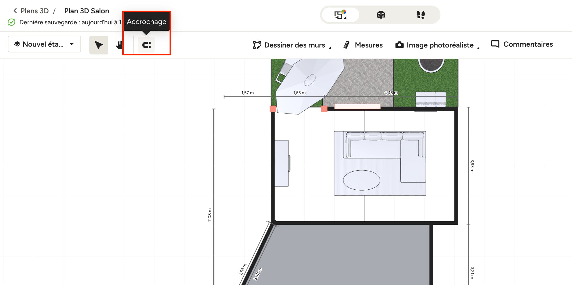 Pour ce faire, cliquez sur l'icône de mise en place ou "Accrochage" dans la barre d'outils en haut de votre écran.